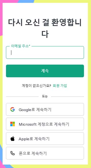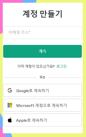 - Google계정이나, Microsoft계정, Apple로 계속하기 중에 선택합니다