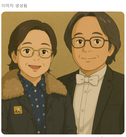 '첨부한 이미지를 40대 한국인 지브리 스타일로 만들어줘'