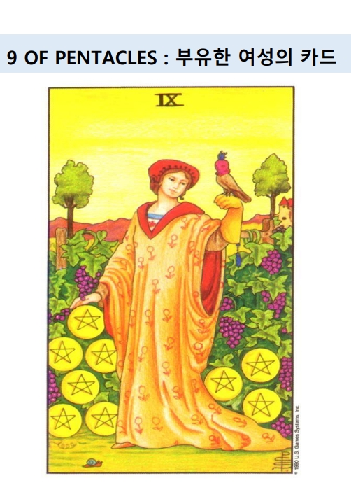 7. 12월 조언카드 - 펜타클 9번 (Nine of Pentacles) : 부유한 여성의 카드