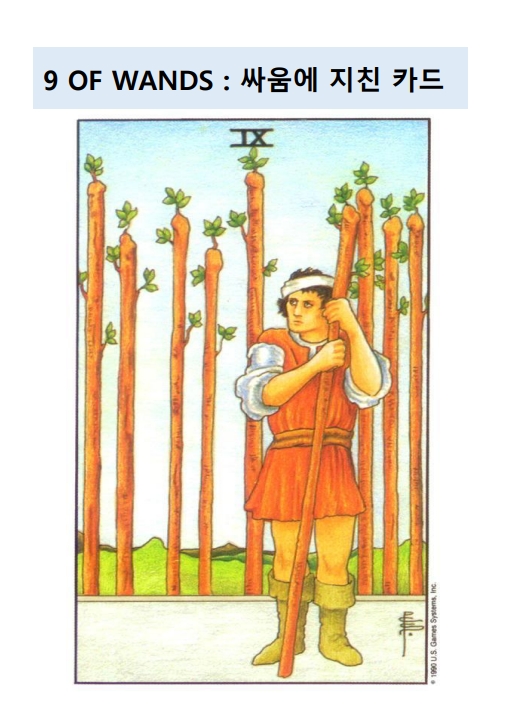 5. 12월 넷째 주-지팡이 9번 (Nine of Wands) : 싸움에 지친 카드